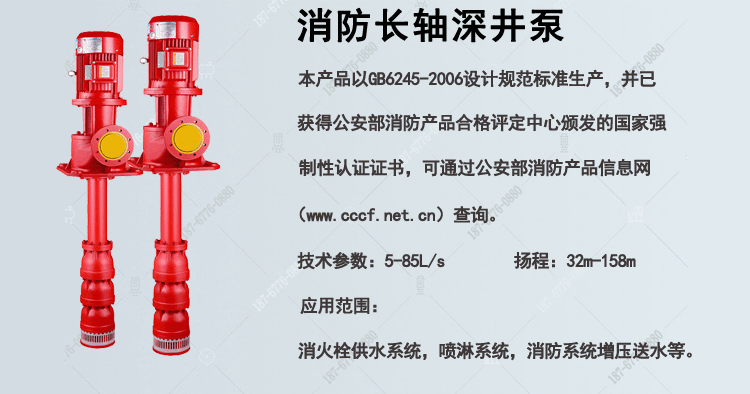 | 動力源形式 | 電動機消防泵組 | 輔助特征 | 深井消防泵 |