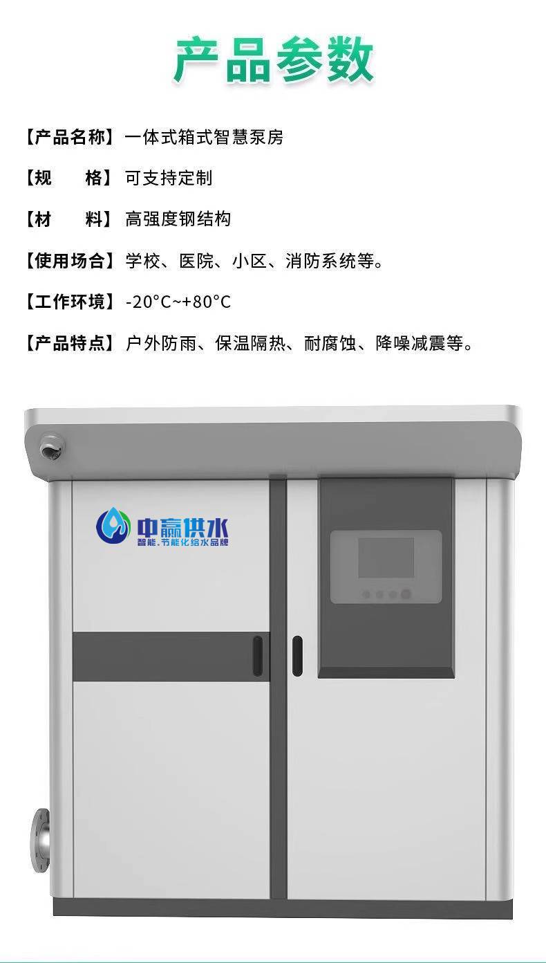 那曲箱式集成供水泵站 地上裝配式箱泵一體化移動式智慧泵房由水泵、流量計、閥門、壓力計等傳感器和控制器PLC組成,負(fù)責(zé)實時監(jiān)測泵房內(nèi)的各項數(shù)據(jù)。這些數(shù)據(jù)包括但不限于清水池水位、進(jìn)站壓力、出站流量、出站壓力等,以及加壓泵組的啟停狀態(tài)、工作電流、工作電壓等電參數(shù)。這些傳感器和控制器通過精確測量和實時反饋,確保泵房運行狀態(tài)的精準(zhǔn)掌握。