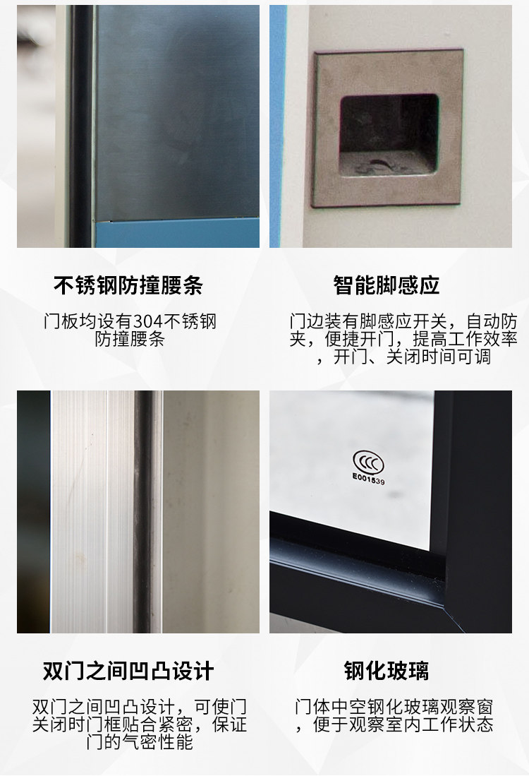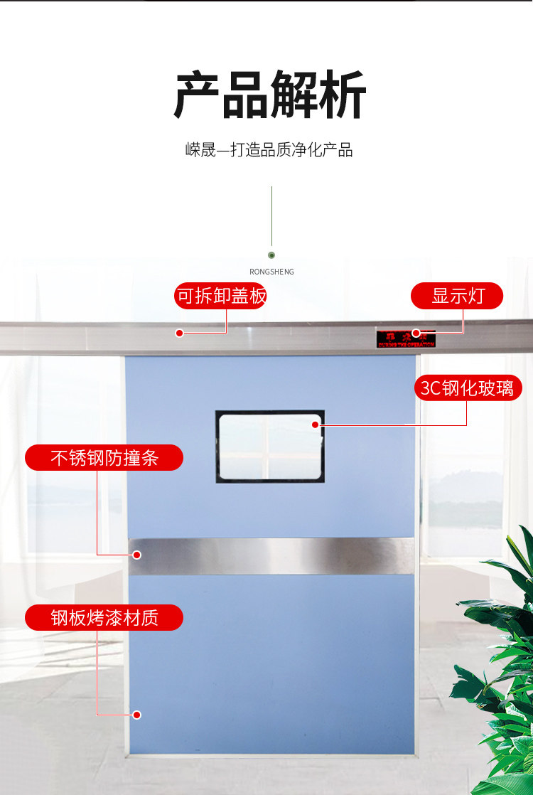扇四周嵌進進口優(yōu)質(zhì)材料密封條,符合醫(yī)院使用的衛(wèi)生要求,配備腳感應(yīng)開關(guān),雙面無框圓角玻璃觀察窗。