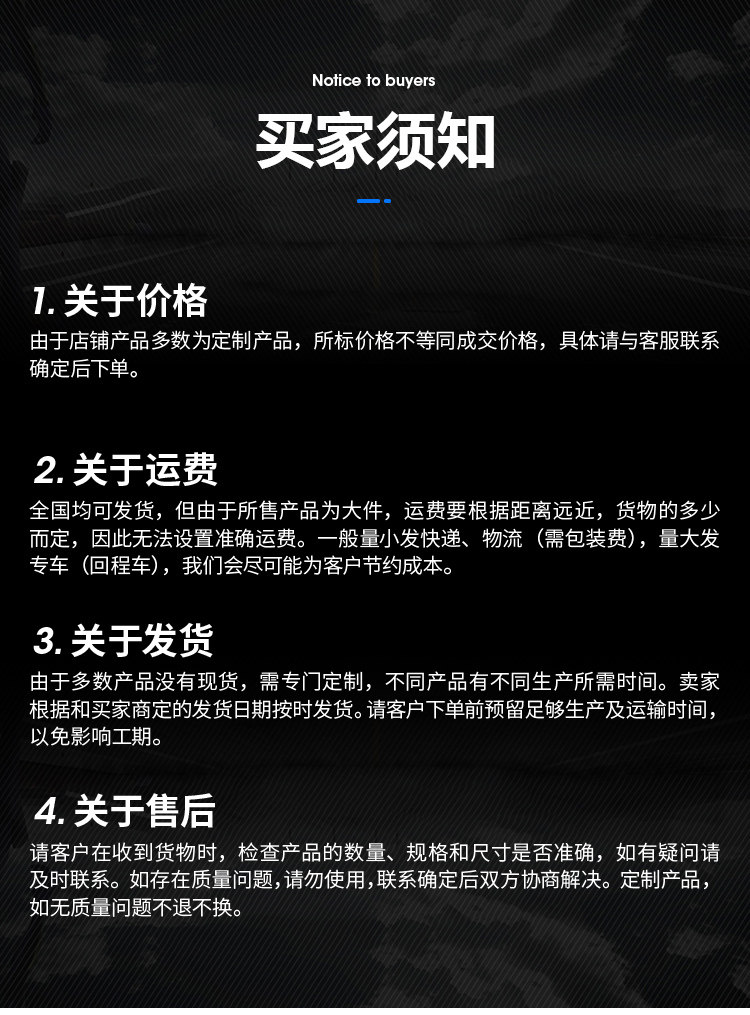 注:所有規(guī)格 需要定制,定制時間3-7天,由于定制貨物,賣出后,不支持退貨。