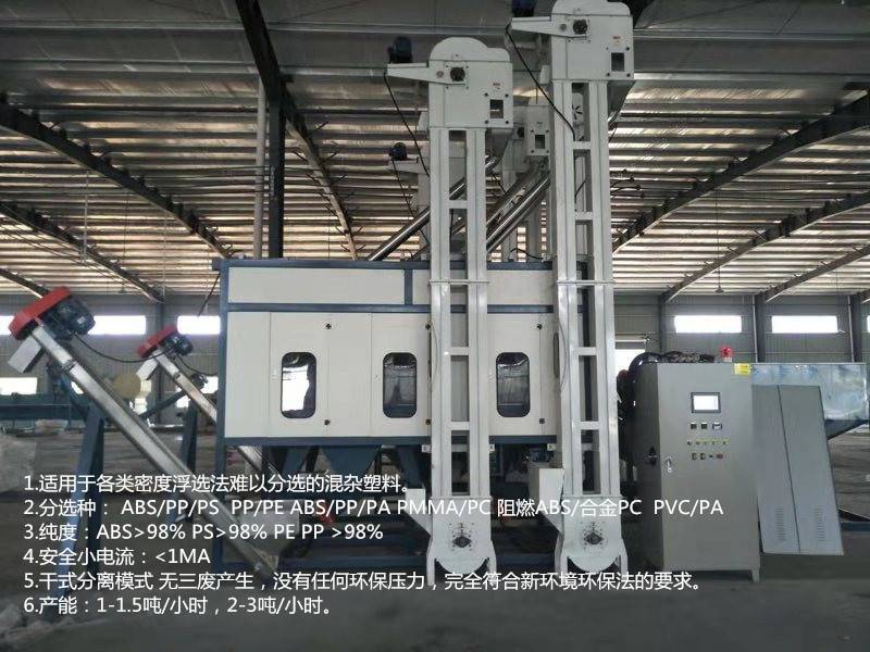 2、主要分選種類:PET/PVC PP/PE PC/PMMA ABS/PS/PP PA/松香 PA/PMMA