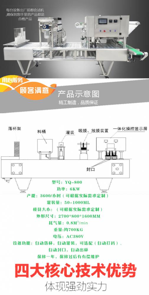 全自動杯盒灌裝封口機 膏液體注塞顆粒量杯包裝機 果凍酸奶封杯機 燁企灌裝機詳細介紹