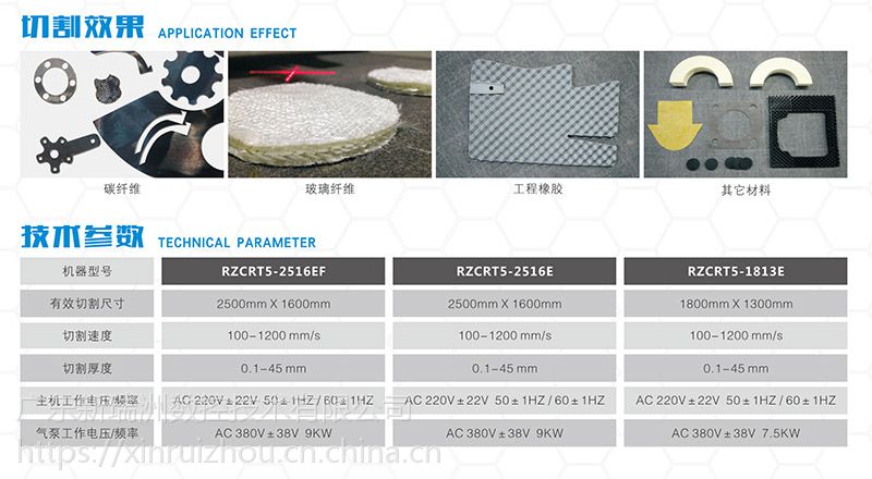 切割材料 瓦楞紙、卡紙、白紙板、灰紙板、不干膠、PVC膠板、KT板、人造革、皮革、墊片、海綿、預(yù)浸料、布料、亞克力、蜂窩板、纖維板、環(huán)氧樹脂板、有機(jī)玻璃、汽車腳墊、纖維復(fù)合材料等柔性材料