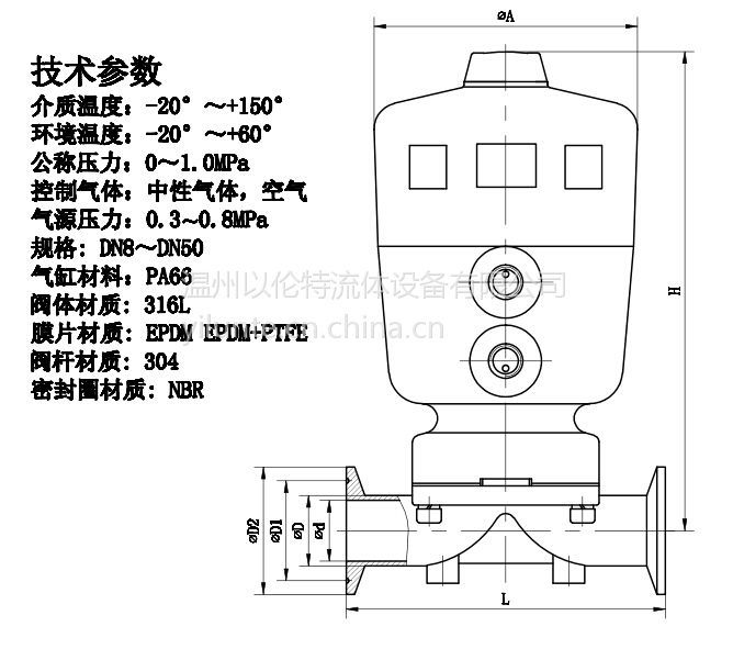 衛(wèi)生級隔膜閥應(yīng)用及技術(shù)參數(shù):