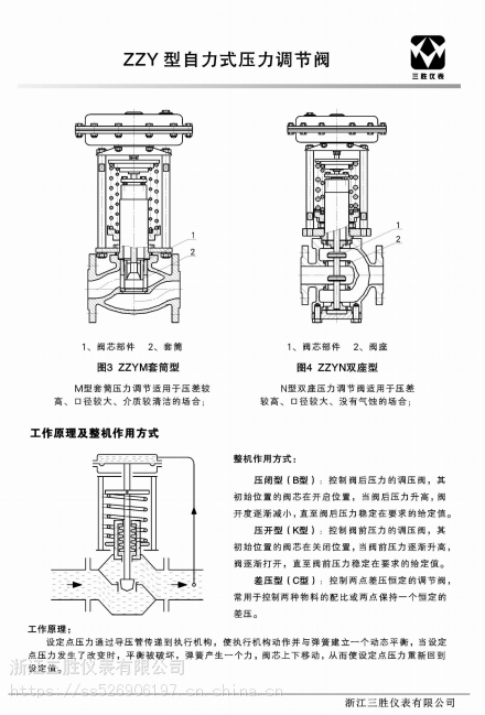 .自力式壓力調(diào)節(jié)閥分閥后壓力調(diào)節(jié)型(B型)、閥前壓力調(diào)節(jié)型(K型)和差壓調(diào)節(jié)型三種;