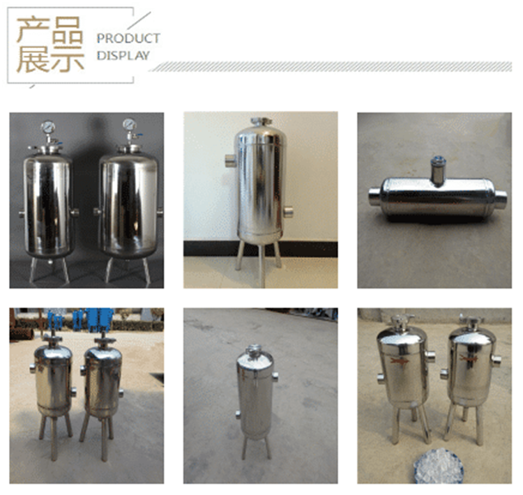 3、 罐體采用3-6mm不銹鋼或碳鋼板整體沖壓成形,采用雙面焊接工藝,整體防腐處理。罐體能承受6-20公斤的壓力,而不變形、不損、不腐蝕。