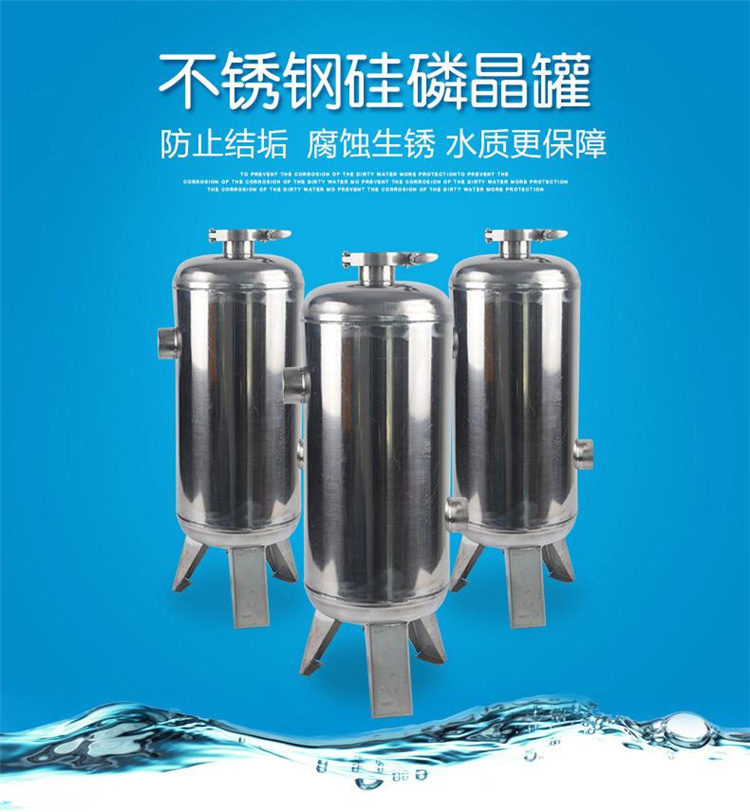 硅磷晶罐可獨立安裝使用,也可根據(jù)不同的水質特點及使用要求,結合凈水器、自動過濾機、反沖洗濾清器配套安裝使用進行深度水處理(提供二合一、多機并聯(lián)一體化組合)。公共建筑給水系統(tǒng)只需系統(tǒng)就能實現(xiàn)防止銹蝕、抑制結垢的作用,保護系統(tǒng)金屬管材及給水換熱設備,延長設備使用周期、降能耗提高給水品質,對新、舊系統(tǒng)的水力工況無影響,運行阻力極低。