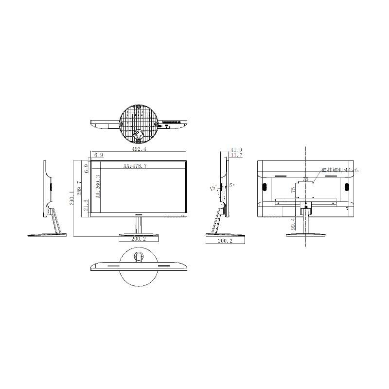DS-D5022FX 海康威視22寸FHD高清液晶顯示器 產(chǎn)品尺寸: