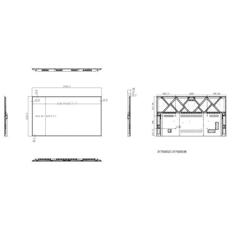 DS-D5098UL 海康威視98寸4K高清液晶監(jiān)視器 尺寸圖: