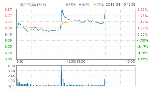 上海電氣午后異動大漲5.11%報6.79元 成交4.01億元