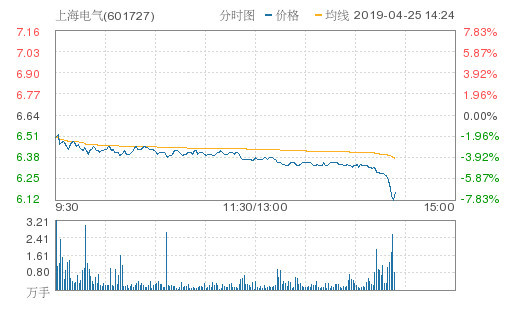 上海電氣午后異動跳水7.23%報6.16元 成交5.26億元