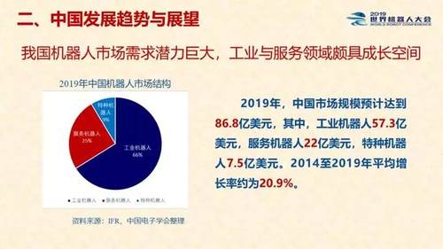 根據(jù)上個月世界機(jī)器人大會發(fā)布的《中國機(jī)器人產(chǎn)業(yè)發(fā)展報告(2019年)》顯示,全球服務(wù)機(jī)器人迎來發(fā)展黃金時代!在中國,服務(wù)機(jī)器人的市場規(guī)模快速擴(kuò)大,成為機(jī)器人市場應(yīng)用中頗具亮點(diǎn)的領(lǐng)域。2019年中國服務(wù)機(jī)器人市場規(guī)模有望達(dá)到22億美元,同比增長約33.1%,高于全球服務(wù)機(jī)器人市場增速。