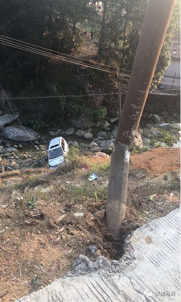 緊要,高州一小車撞斷電線桿,鏟落幾十米河坑!