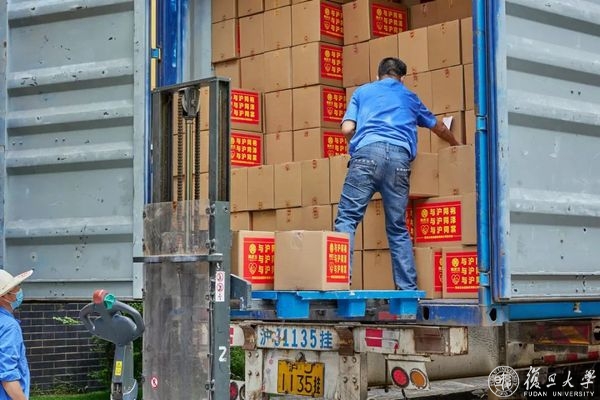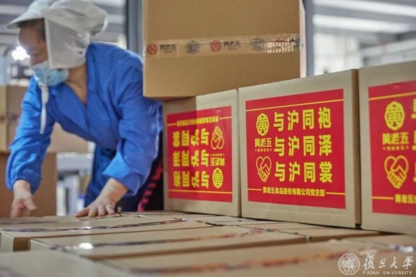 經(jīng)過(guò)兩天多的長(zhǎng)途跋涉,這批由黃老五食品股份有限公司自行籌措,價(jià)值近50萬(wàn)元的6000份愛心物資從四川內(nèi)江出發(fā),馳援2000公里之外的上海復(fù)旦。