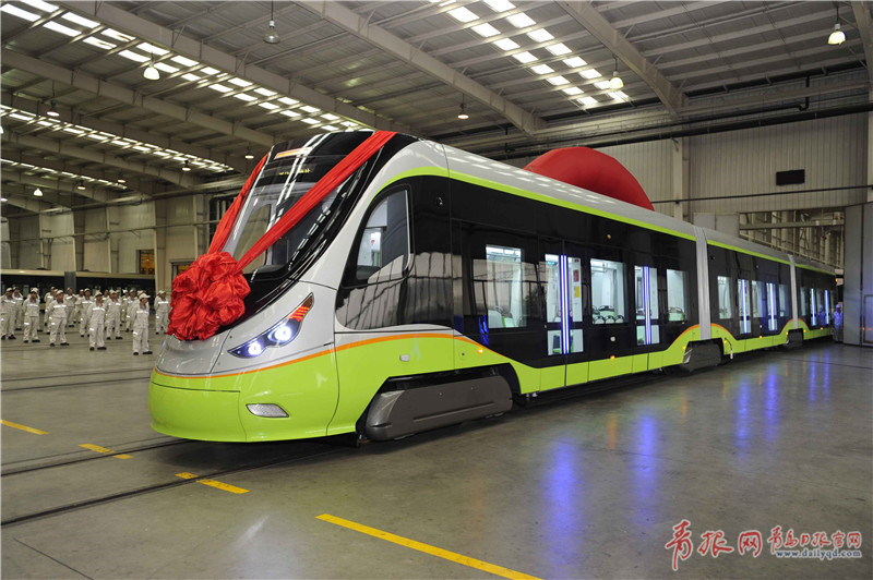 全球首列自動(dòng)駕駛有軌電車青島下線