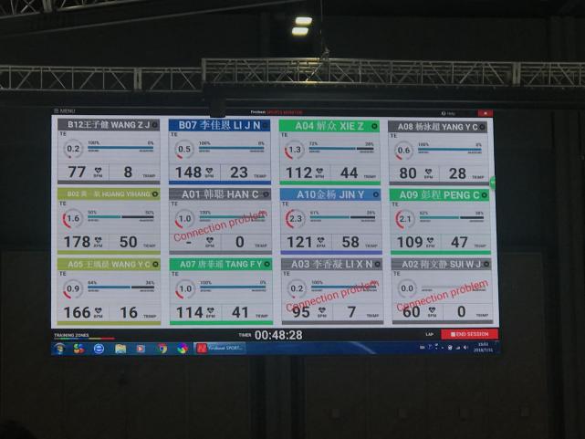 此外,花滑冰場(chǎng)正面一塊巨大的led顯示屏同樣十分惹眼,上面寫著每位正在進(jìn)行訓(xùn)練的運(yùn)動(dòng)員的心率、心跳等數(shù)據(jù)。趙宏博解釋道,這個(gè)設(shè)備叫做“心率帶”,是實(shí)時(shí)監(jiān)測(cè)運(yùn)動(dòng)員心肺功能的?!斑\(yùn)動(dòng)員訓(xùn)練時(shí)會(huì)帶著心率帶,能夠?qū)崟r(shí)監(jiān)測(cè)訓(xùn)練強(qiáng)度、運(yùn)動(dòng)員的狀態(tài)。我們有專門的科研組跟隨,每天都會(huì)有訓(xùn)練報(bào)告,能夠知道他們的訓(xùn)練情況,教練組便能夠更好地調(diào)整運(yùn)動(dòng)員的狀態(tài)?!壁w宏博說(shuō)。