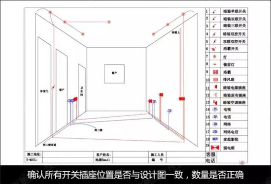 大家需要確認(rèn)所有開關(guān)插座位置是否與設(shè)計圖一致,數(shù)量是否正確。在做電路規(guī)劃時,空調(diào)電源插座、廚房電源插座、衛(wèi)生間電源插座、其它電源插座及照明電源,都應(yīng)該設(shè)計單獨的同路,避免有一路電短路而影響全部的用電。但需要注意的是,各分路線的合計容量可不能超過進戶線的總?cè)萘俊?/p>