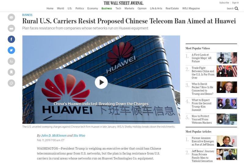 美國《華爾街日報》11日報道稱,特朗普正在考慮禁止美國電信運營商采用中國電信企業(yè)的設備,但此舉正面臨美國鄉(xiāng)村電信運營商的不滿,因為他們高度依賴華為的設備。