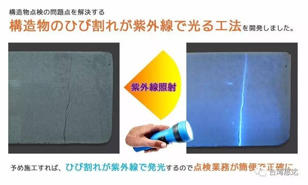 PlanusChemicalCo.,Ltd.公司正在市場中推展「螺紋松脫檢測工法」,該工法以目視的方式正確且簡易地檢測出螺栓和螺母的松脫。它是在螺栓和螺母組成的栓合件上,分上與下兩層涂上兩種不同性質(zhì)的涂料,螺栓的松脫就會使下層的涂膜在紫外線的照射下顯露出來。該工法是將目視檢測化為可能的一種劃時代技術(shù)。