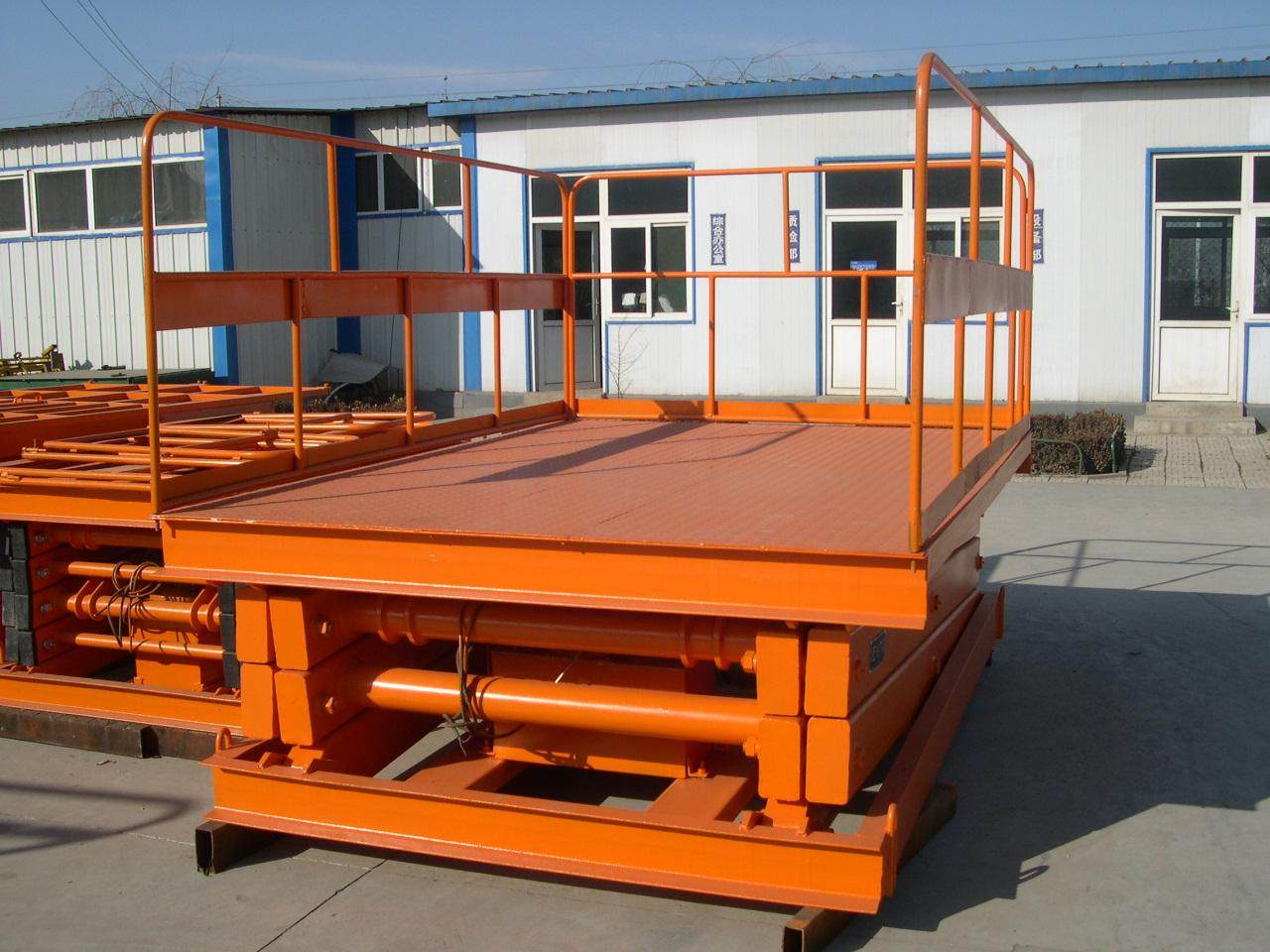 平臺部分:是承載重物的鋼結(jié)構(gòu)平臺,有封閉式(即轎廂式)或敞開式,兩側(cè)裝有導(dǎo)向滾輪或?qū)а?,平臺底部可聯(lián)接升降油缸或聯(lián)接升降剪叉形鋼架: