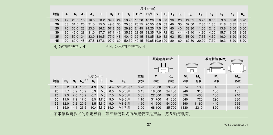1、滑塊兩端有保護(hù)鋼板;2、滑塊可加裝有前置密封單元和前置潤滑單元;3、滑塊有6個潤滑接口(油嘴)4、滑塊不受限制的互換,精度不變;5、運(yùn)行平穩(wěn)順暢、噪音低;6、導(dǎo)軌配有防護(hù)帶;7、滾道以45度接觸角布置,使四個主要承載方向上都具有同樣的承載能力。