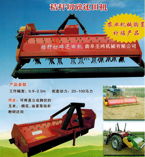 “圣鴻”牌秸稈切碎還田機(jī)與大型拖拉機(jī)配套懸掛作業(yè),直接可將直立或倒伏的玉米、棉花、油菜,高粱等秸稈一次粉碎還田。型號多,粉碎效果好,是農(nóng)作物秸稈,雜草棉花桿,蘆葦,野草等粉碎還田的好農(nóng)機(jī)。