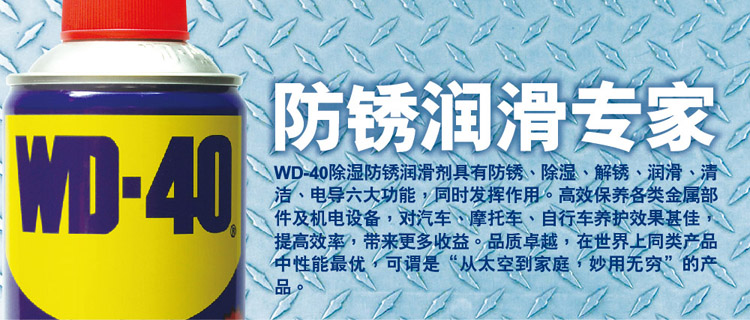 1、為什么機(jī)械設(shè)備、金屬配件和出口產(chǎn)品在使用WD-40后不易生銹? WD-40與金屬表面有極強(qiáng)的親和力,而且滲透性極強(qiáng),能夠滲透到金屬毛細(xì)孔內(nèi)部,將濕氣和水份排除,形成一層僅0.0025-0.0076毫米的致密保護(hù)膜,以隔絕濕氣和空氣,達(dá)到長期防銹效果。所以,WD-40能夠由內(nèi)而外地防止金屬制品的銹蝕,可以廣泛應(yīng)用于精密配件、五金工具、機(jī)械配件、模具、工作母機(jī)。 2、WD-40為什么能有效清除機(jī)械設(shè)備所積累的污濁? WD-40具有極強(qiáng)的滲透性,且與金屬表面的親和力極強(qiáng),能使污濁、油漬、灰塵從金屬表面分離,將這些污濁物有效清除,保持機(jī)械部件良好運(yùn)轉(zhuǎn)。雖然WD-40的滲透性極強(qiáng),但對與金屬表面的油漆、纖維、塑料等材質(zhì)毫無損害。可廣泛應(yīng)用于清潔各類機(jī)械摩擦副內(nèi)的雜質(zhì)、清除粘附在金屬表面的各種膠粘物。 3、WD-40為什么能使引擎和電子系統(tǒng)在潮濕狀態(tài)下輕松啟動(dòng)? WD-40具有比水更強(qiáng)的滲透性,而且與金屬表面的親和力極強(qiáng),能夠滲透到金屬毛細(xì)孔內(nèi)部,形成一層僅0.0025-0.0076毫米的致密保護(hù)膜,有效地排除金屬表面及毛細(xì)孔內(nèi)部的水分和濕氣。WD-40能夠有效解決許多器件因受潮而產(chǎn)生的短路問題,如:引擎、火花塞、電瓶接頭部位、開關(guān)、發(fā)電機(jī)、變壓器、馬達(dá)繞線圈、配電盤、電磁開關(guān)、繼電器、按鈕等。 4、WD-40在模具保養(yǎng)方面有哪些優(yōu)點(diǎn)? WD-40具有極強(qiáng)的除濕排水功能,在金屬表面形成的保護(hù)膜能讓模具長期保持不生銹,室內(nèi)防銹期在一年以上,WD-40具有強(qiáng)力去污功能,可輕松除去橡膠模具、塑料模具上的殘留腐蝕物,起到特有的清潔防銹作用。同時(shí),WD-40潤滑不粘灰,可讓模具的拆裝變得輕松簡單。 5、使用WD-40是否成本很高? 從投入產(chǎn)出比的角度考慮,WD-40是很經(jīng)濟(jì)的防銹潤滑劑,成本并不高。這主要體現(xiàn)在: WD-40具有六大功能——防銹、除濕、解銹、潤滑、清潔、電導(dǎo),而且同時(shí)發(fā)揮作用;WD-40具有卓越的防銹性能,其在室內(nèi)的防銹期在一年以上;WD-40有超過97%體積的有效溶液,有效成分遠(yuǎn)遠(yuǎn)高于市面上的同類產(chǎn)品;WD-40涂布面積大,潤滑不粘灰,能有效地對金屬進(jìn)行保養(yǎng);WD-40安全環(huán)保,易燃性低。 6、WD-40有哪些使用方法? 根據(jù)保養(yǎng)部件的不同,WD-40的使用方法有:噴涂、擦、刷、浸泡。 |