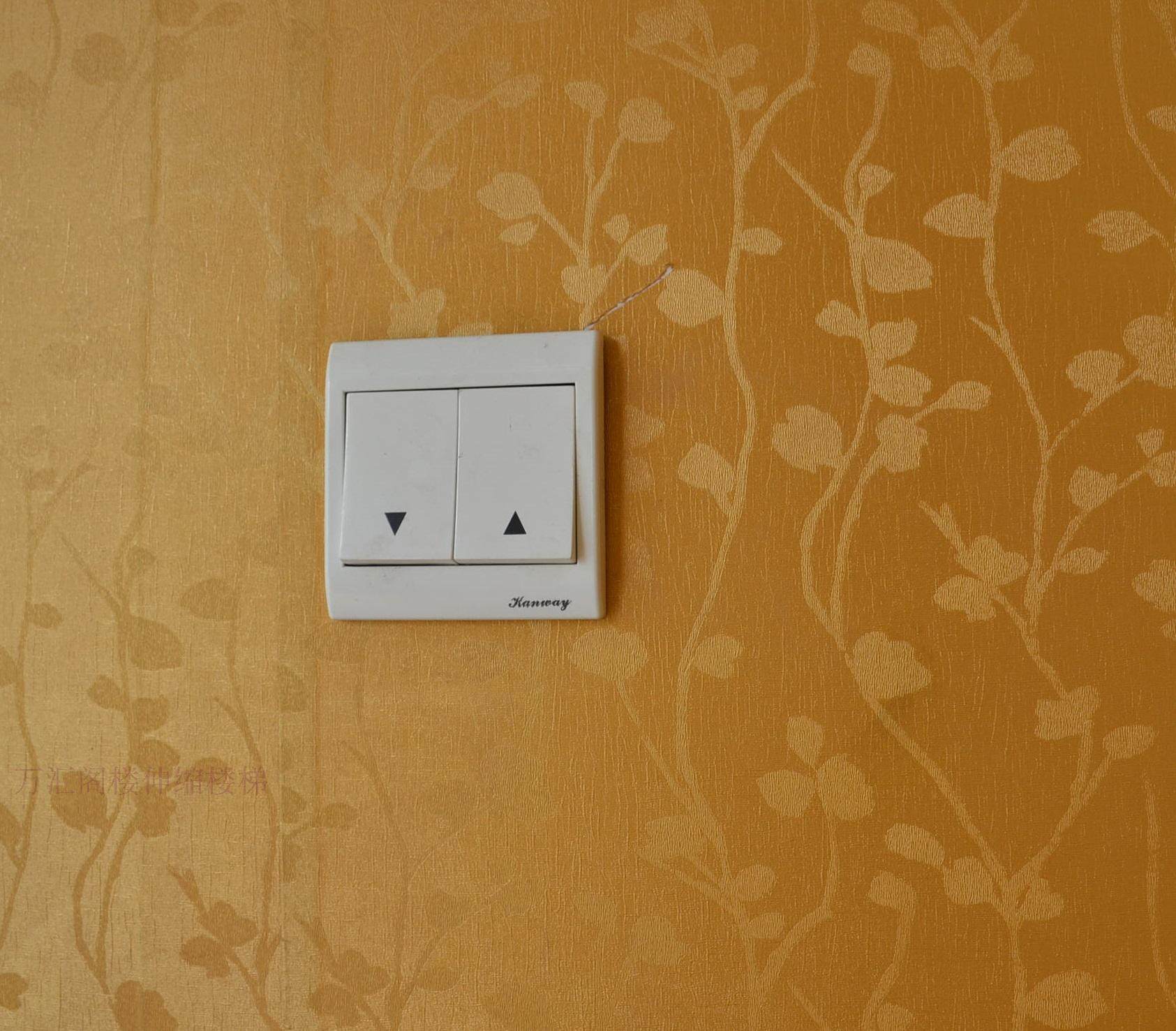 電動(dòng)伸縮樓梯接線:a.在樓梯口左邊或右邊預(yù)留一個(gè)標(biāo)準(zhǔn)五孔插座,并引火線到樓下安裝一個(gè)電源開關(guān),開關(guān)用于控制插座電源,不工作時(shí)關(guān)閉,工作時(shí)打開。這樣能延長和保護(hù)電機(jī)控制器的壽命,減少故障發(fā)生。b.在裝修時(shí)從樓上到樓下預(yù)埋穿線管和電源暗裝底座盒,安裝樓梯時(shí)用于固定按鈕開關(guān),所需控制開關(guān)和三芯已經(jīng)配好。具體如圖所示