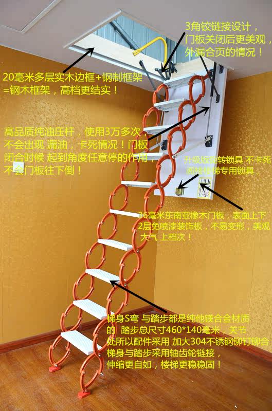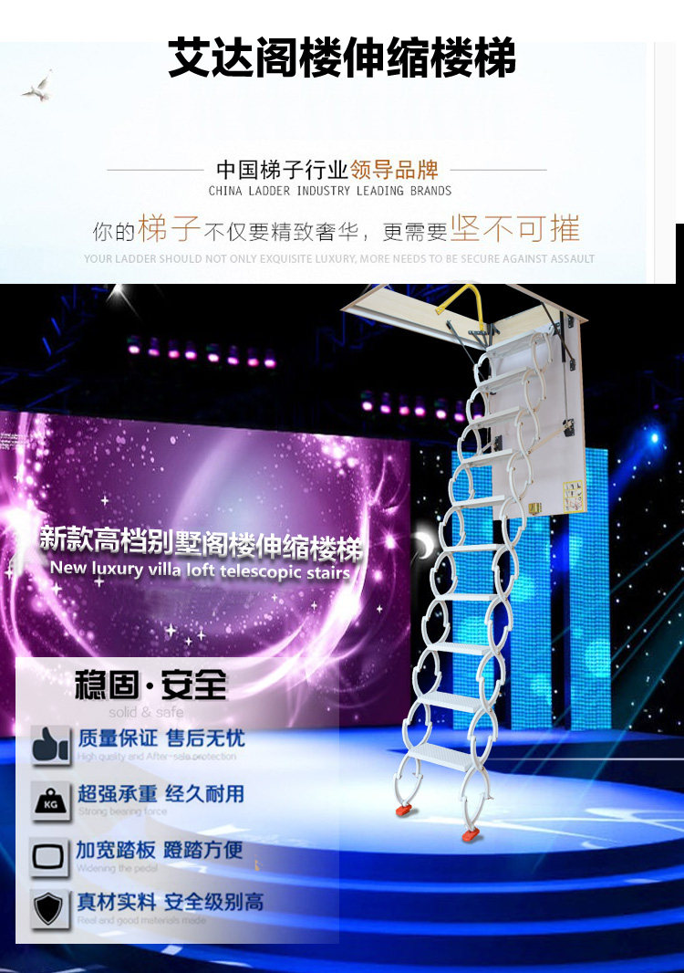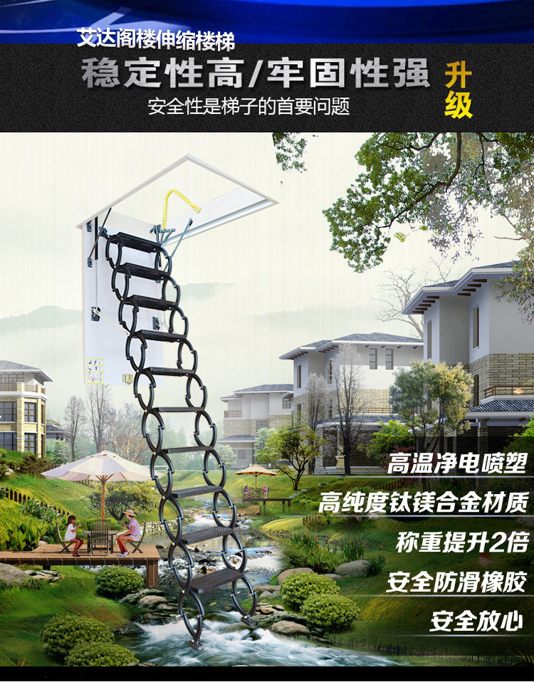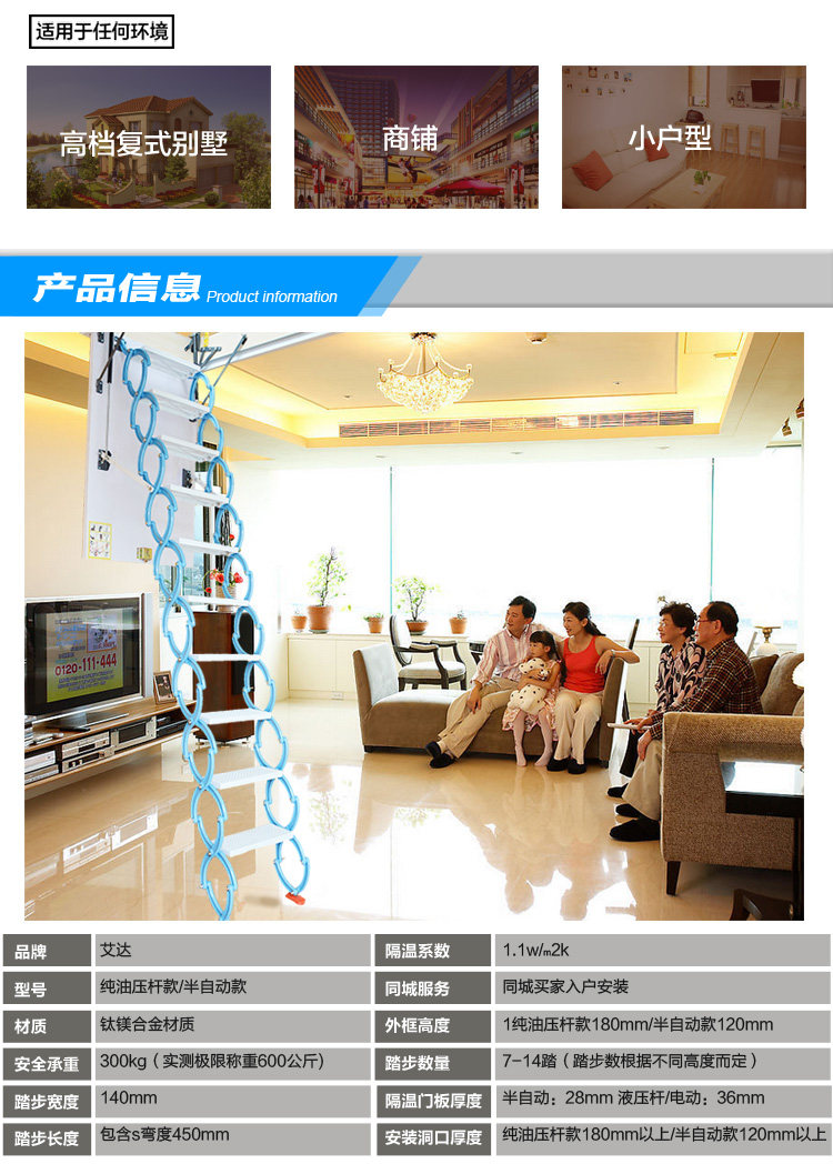 艾達牌高檔家用半自動鈦鎂合金閣樓伸縮樓梯閣樓樓梯。
