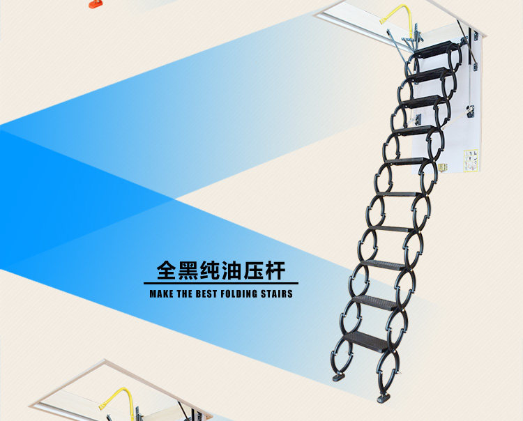 提醒:彈簧款配置和純液壓桿款配置都是手動樓梯 只能在樓下操作,如有要求樓上樓下都可以操作的客戶請選擇電動款的! 鎂合金 電動遙控款: