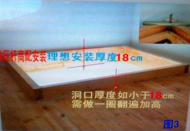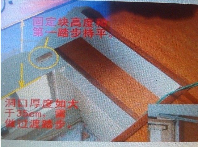2.伸縮樓梯原配的安裝吊絲適合洞口厚度120-350毫米,高配油壓洞 口厚度如低于200毫米,就要做出一圈翻遍出來(如圖3);洞口厚度大于350毫米時,需要做出錯步臺階來調(diào)整上下高度的落差(如圖4)