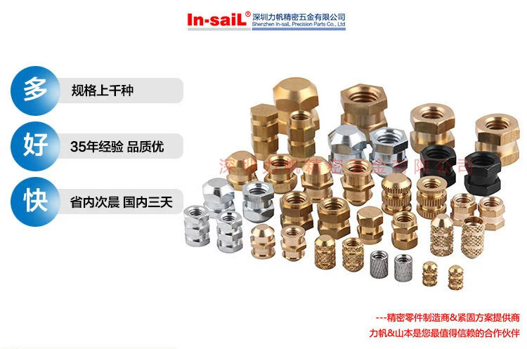 塑膠專用螺母,主要使用材質(zhì)為黃銅,比如:C3602、C3604、H59和環(huán)保黃銅,故又名銅嵌件、銅鑲嵌件、滾花嵌件、預(yù)埋螺母、塑膠埋置螺母、嵌入式銅螺母。