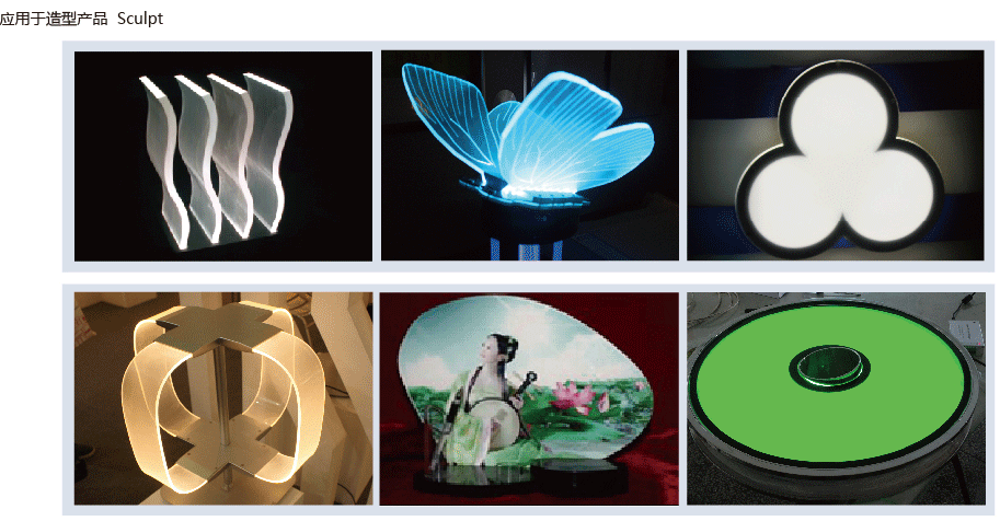 4、突破傳統(tǒng)導(dǎo)光板的局限:可以裁切成任意形狀,可以熱彎,可以拼接使用;