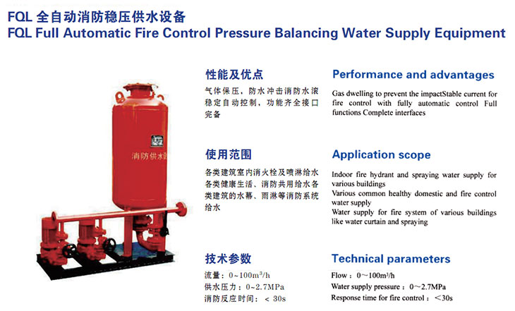 氣體保壓,防水沖擊消防水滾穩(wěn)定自動控制,功能齊全接口完備