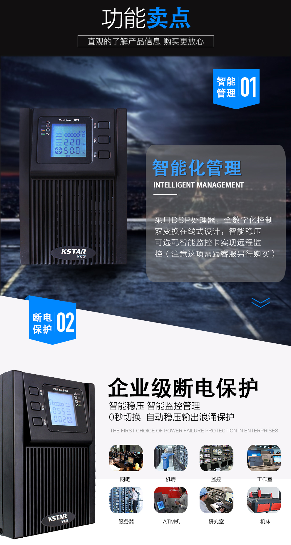 | 工作原理 | 在線式 | 使用環(huán)境 | 商業(yè)級UPS |