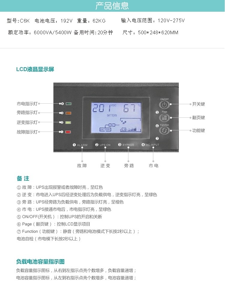 【輸入電壓范圍】:120V-275V (超出此范圍將啟動電池供電)