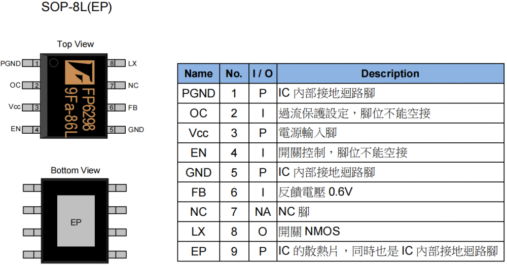 FP6298 是一顆電流控制模式升壓轉(zhuǎn)換器,脈波寬度調(diào)變,內(nèi)置 80mΩ, 4.5A, 12V MOSFET,能 做功率高轉(zhuǎn)換效率,周邊元件少可節(jié)省空間,適合用在行動(dòng)裝置上,***反饋電壓 0.6V (±2%), 內(nèi)建軟啟動(dòng)功能可降低開(kāi)機(jī)時(shí)涌浪電流,過(guò)流保護(hù)透過(guò)外部電阻調(diào)整,電流控制模式讓瞬時(shí)響應(yīng)與系統(tǒng)穩(wěn)定性佳,輕載進(jìn)入省電模式(Skip Mode),達(dá)到輕載***,封裝為 SOP8-8L(EP)。