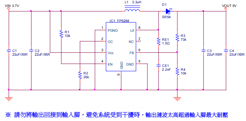1、移動(dòng)電源:用FP6298給電池升壓給USB口供電